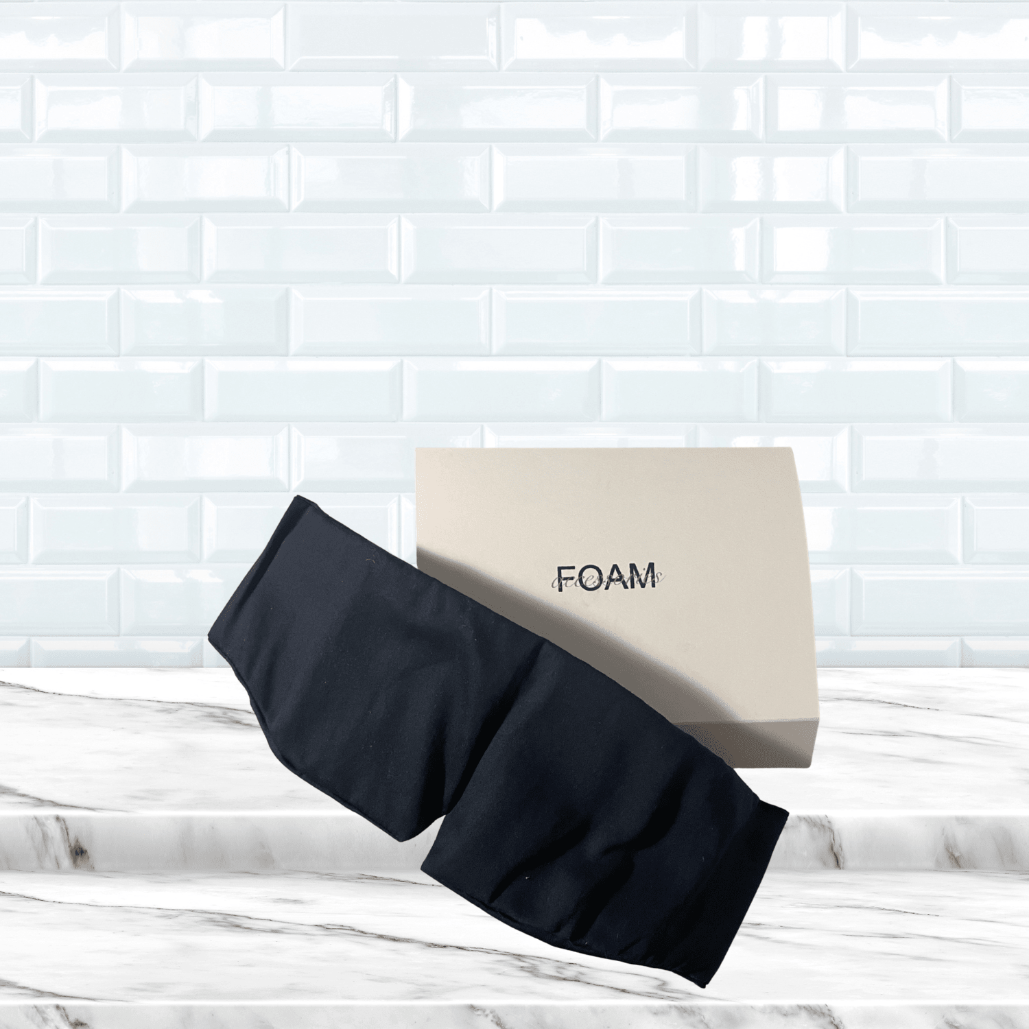 Midnattsblå sovmask i bomullssatin. Designad för att stänga ute ljus och ge en avkopplande nattsömn.